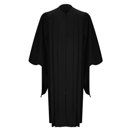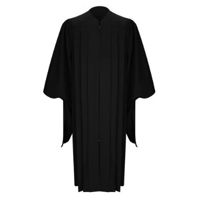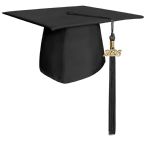 Master's Graduation Gown in Black, with Matte Black Cap and Tassel for Saint Mary-of-the-Woods College.